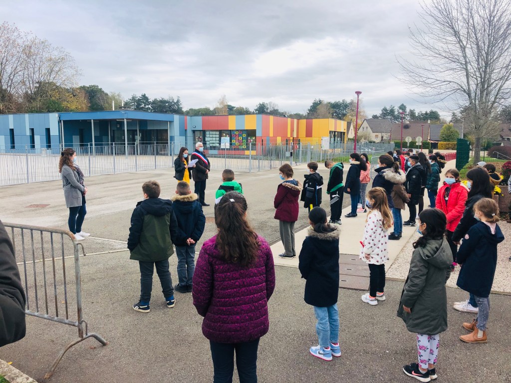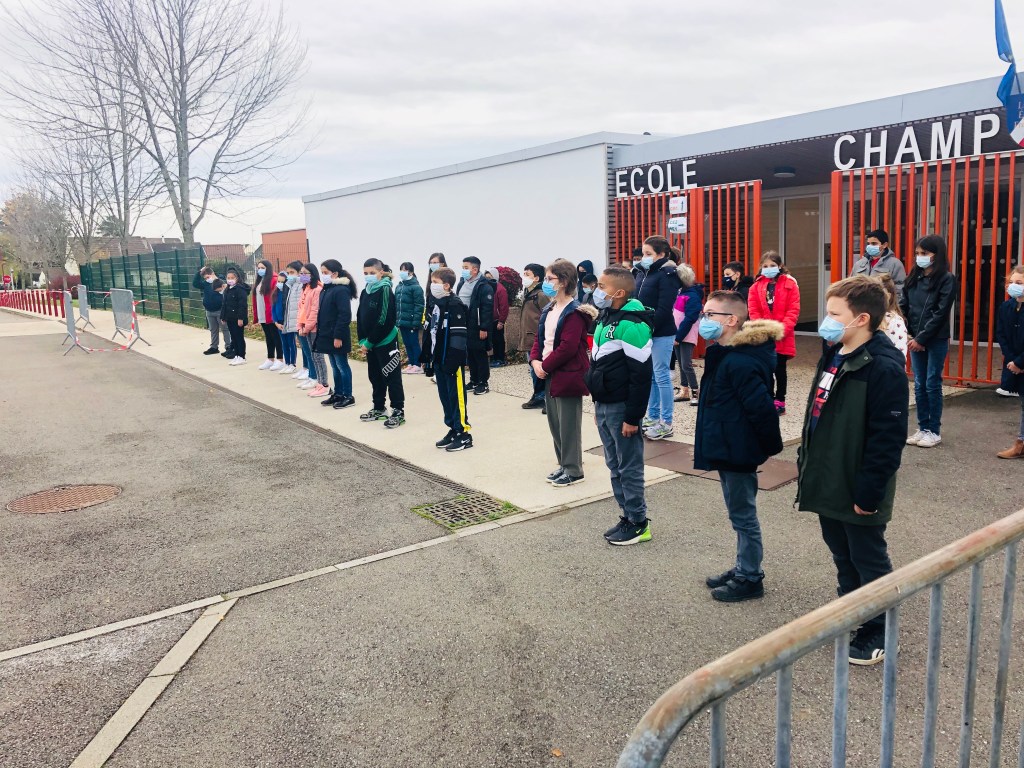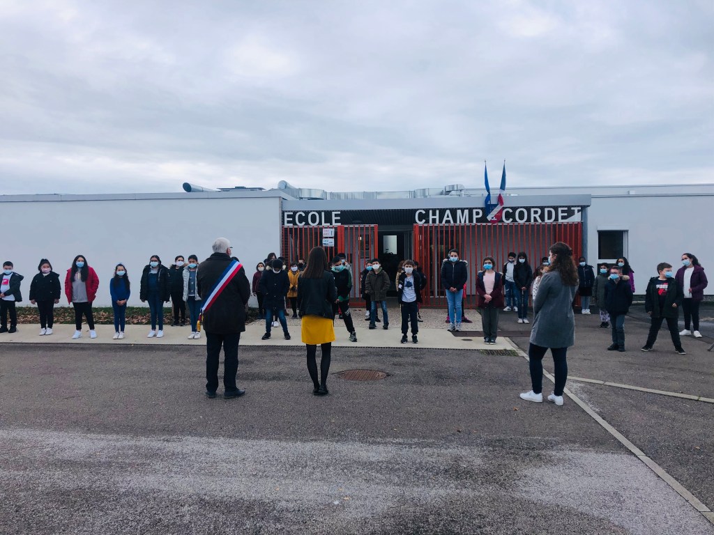 Ce matin, et en présence de monsieur le maire de Torcy, les élèves de Champ Cordet ont respecté une minute de silence en mémoire de Samuel Paty.