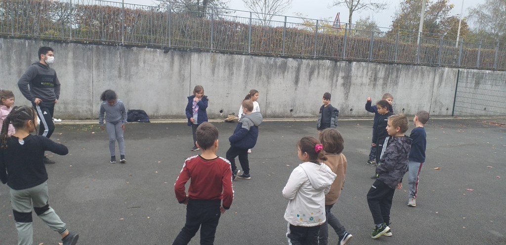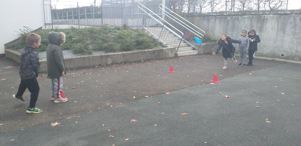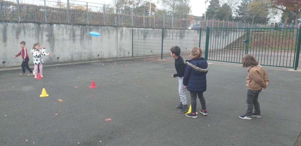 Depuis maintenant plusieurs semaines, tous les mardis, la classe de CE1 accueille deux étudiants STAPS. Les élèves découvrent au fil des séances l’ultimate. En plus du travail autour des lancers et des réceptions, ce sport collectif leur permet de développer des stratégies et de coopérer avec des partenaires.