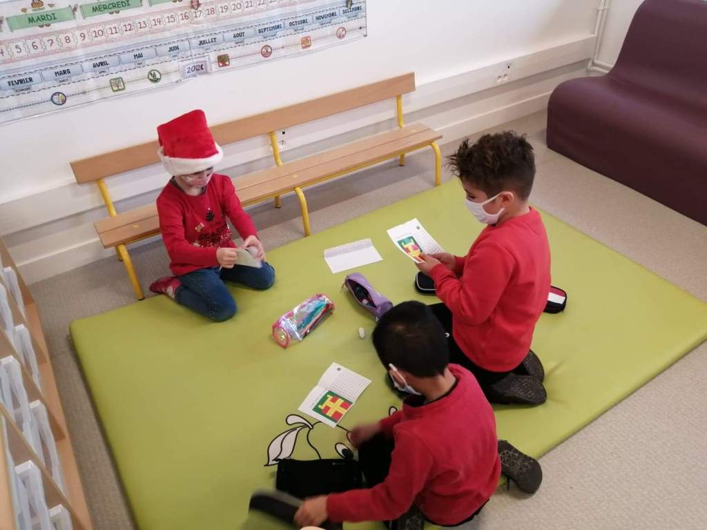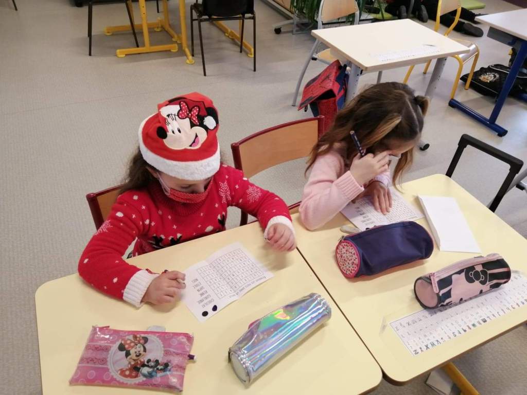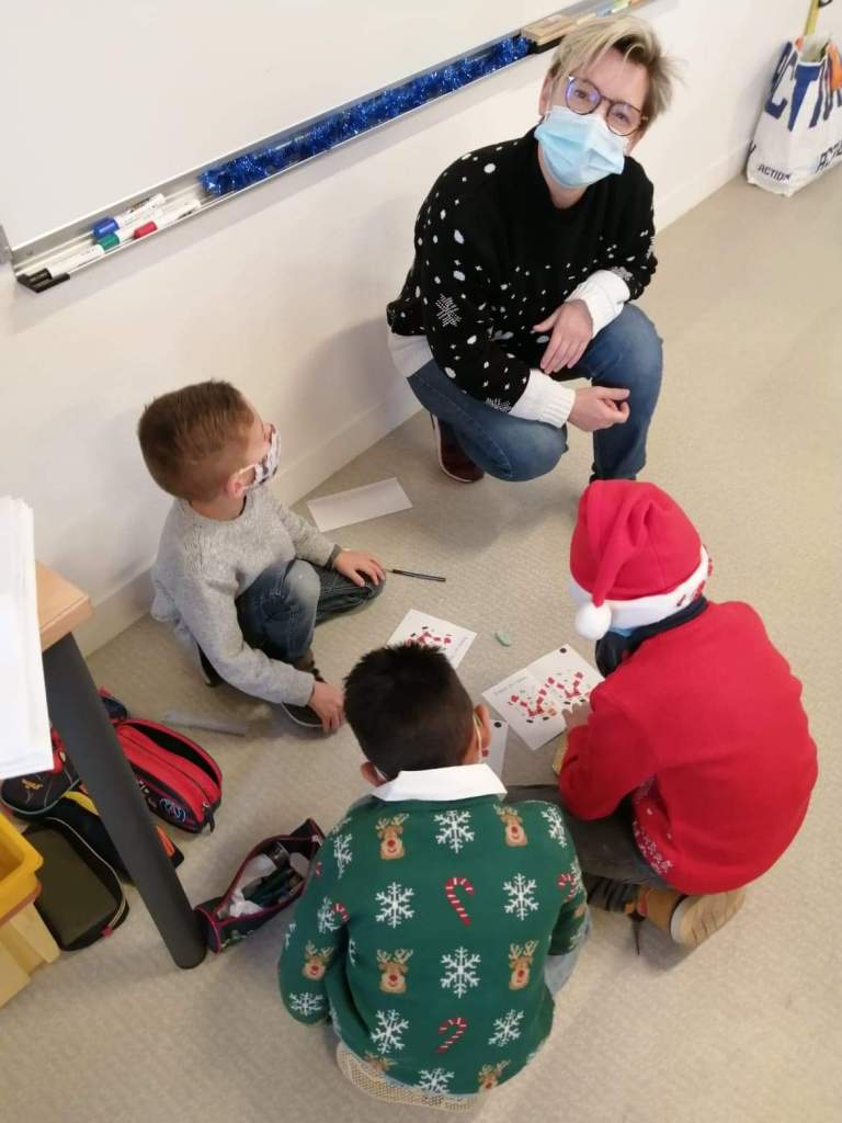 Une dernière journée sous le signe de Noël. Comme toute l’école et les enseignants, les élèves de CP ont revêtu leurs plus beaux pulls et bonnets de Noël pour ce dernier vendredi avant les fêtes. Les maitresses leur avaient ensuite organisé une journée pleine de surprises. Au programme le matin, chant et danse de Noël, que les parents et les enfants pourront voir et revoir en vidéo (voir l’article correspondant). S’en est suivi un escape game où nos élèves se sont affrontés pour de petits défis en équipes. L’après-midi, nous avons passé un moment plus calme avec un film de Noël, pour terminer avec des histoires et un goûter.