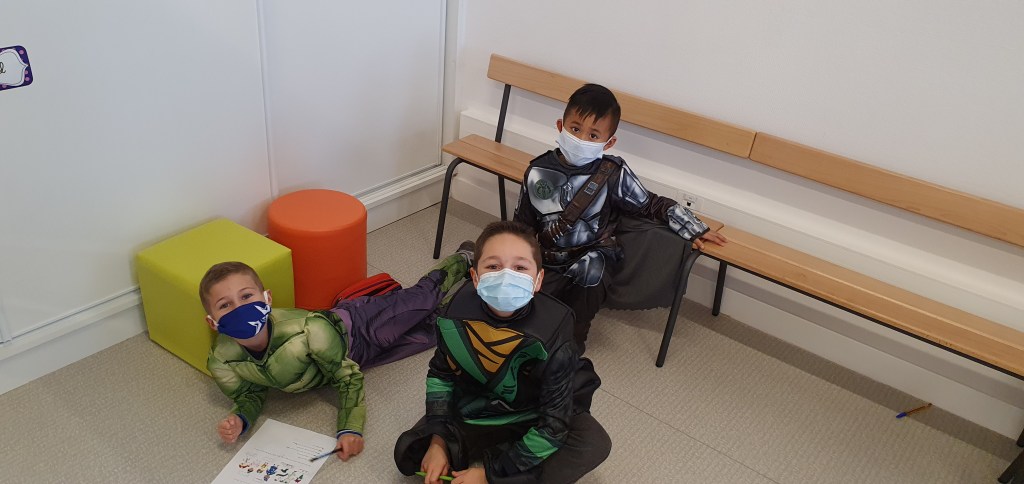 Merci aux plus grands de l’école d’avoir aussi joué le jeu des costumes ! C’était très réussi.