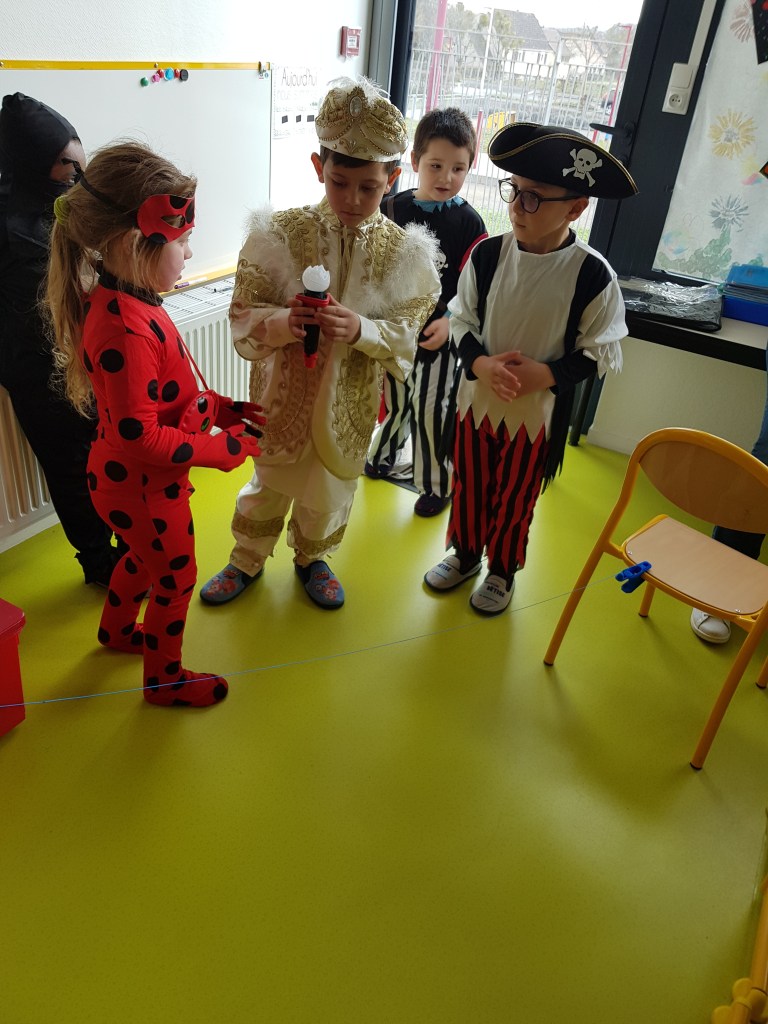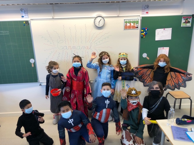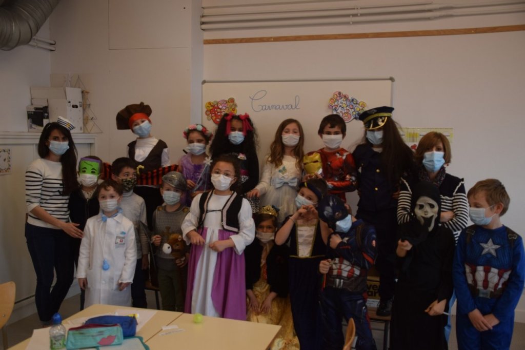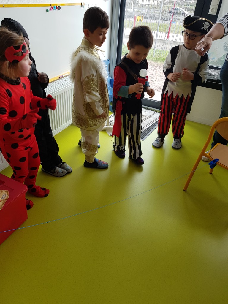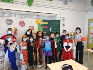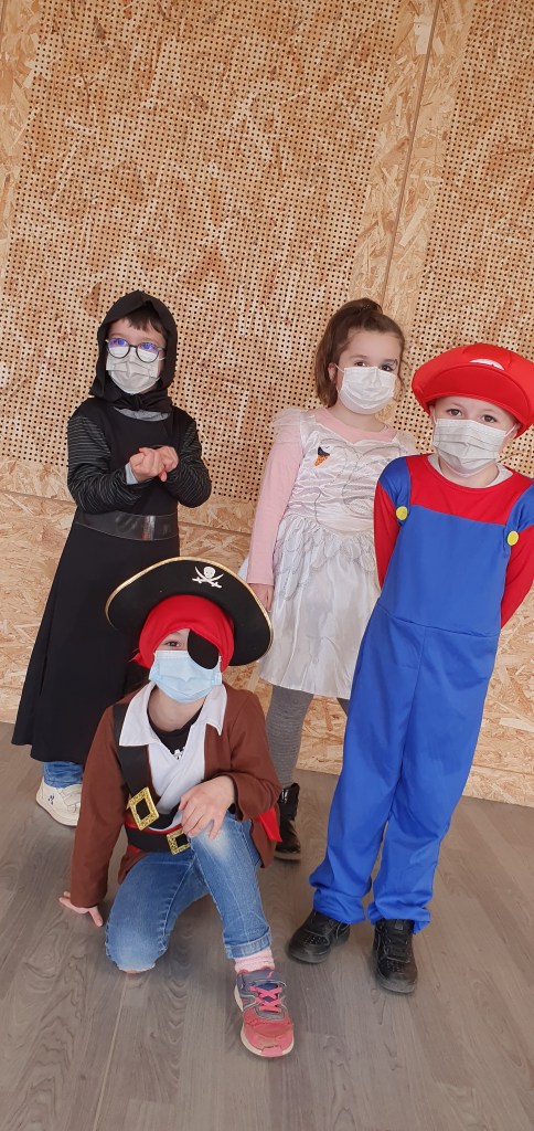 Vendredi après-midi, nous avons fêté Carnaval. Nous sommes tous arrivés déguisés. Nous étions tous très beaux. Nous en avons profité pour faire des jeux en équipe : parcours, énigmes,….. Nous avons fini ce bel après-midi en chanson et avec le bon goûter offert par les parents d’élèves.