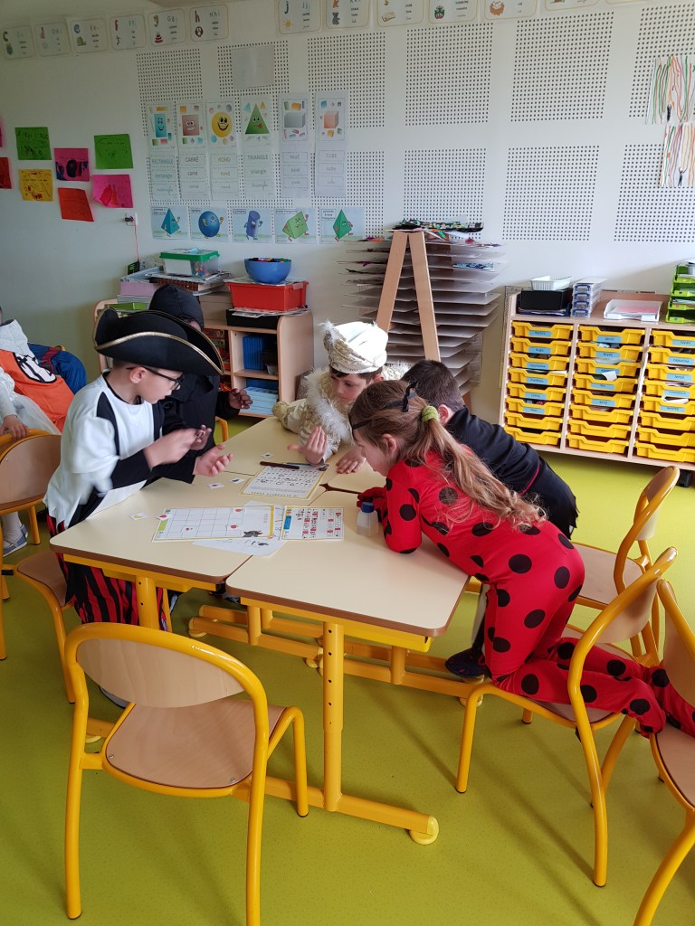 Les classes de CP ont fêté carnaval ce vendredi 19 mars. Le défilé habituel a été remplacé par un après-midi festif à l’école. Au programme : escape-game autour de jeux de lecture et de mathématiques, photos des déguisements et goûter offert par l’association des parents d’élèves. Les enfants se sont bien amusés.