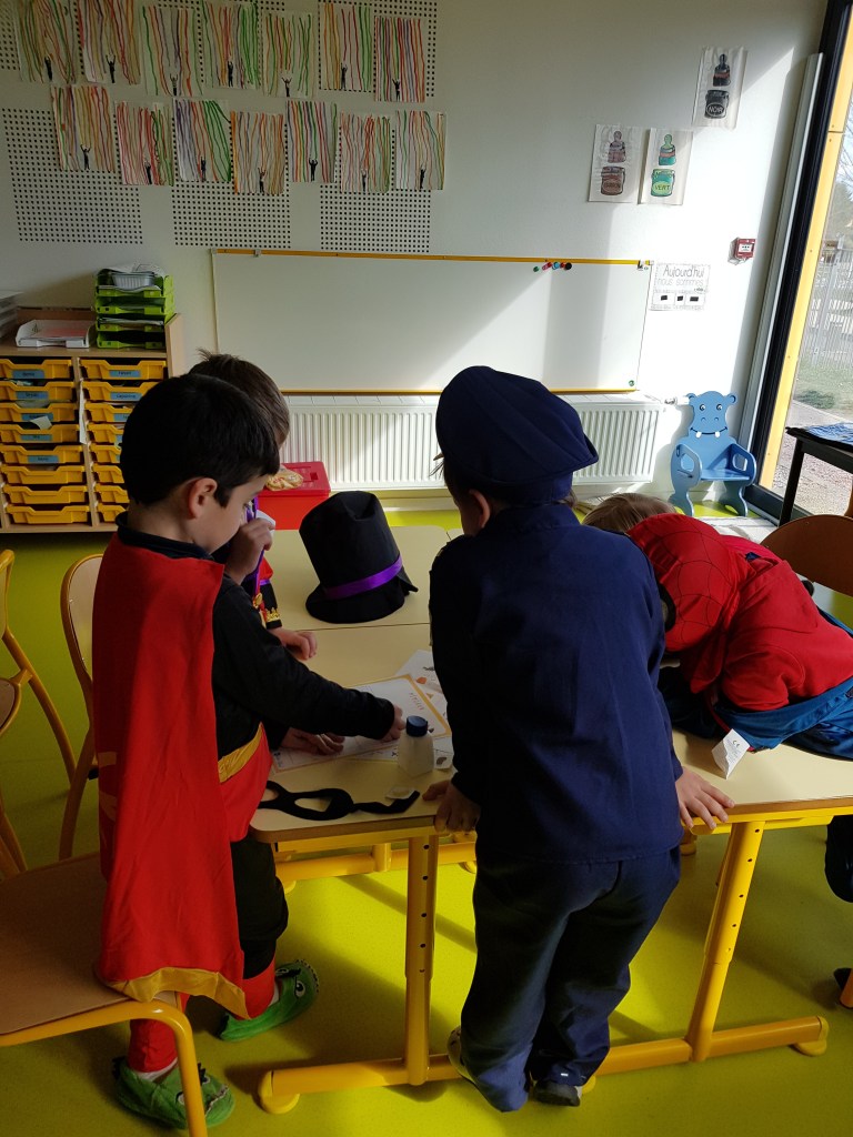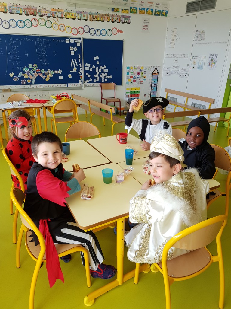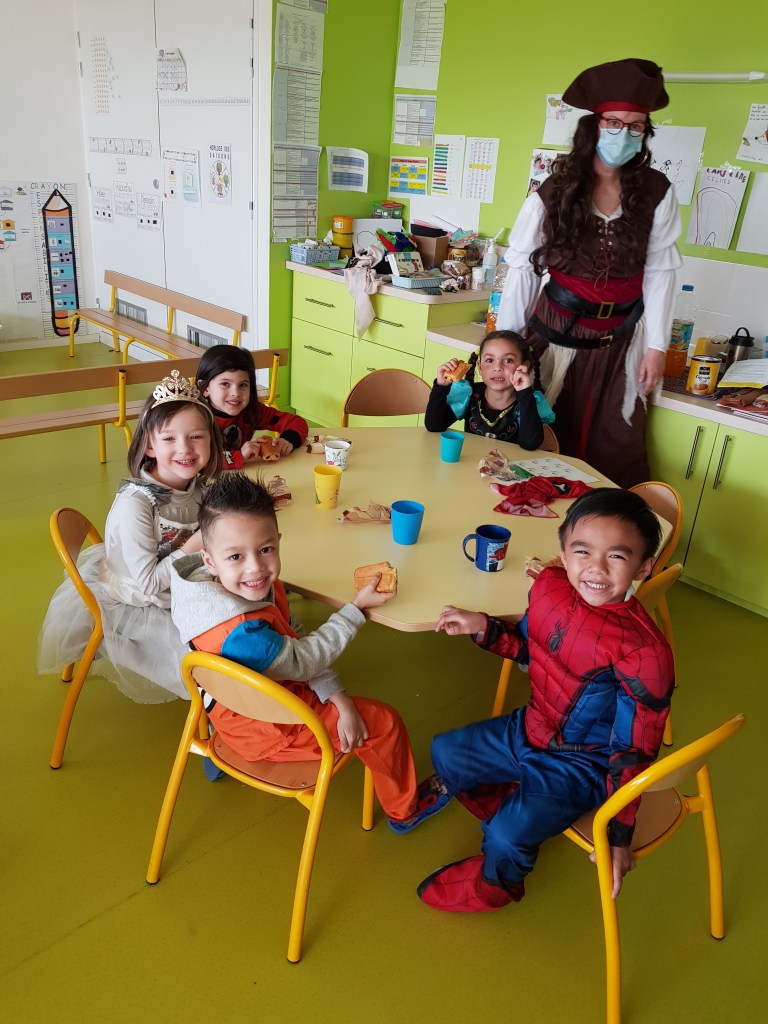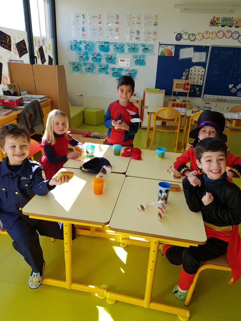 Dans la classe du moussaillon Laetitia; princesses, papillon, super-héros, rock star et cowboy ont fait marcher leurs méninges pour résoudre les énigmes de l’escape game de carnaval. Il fallait bien un bon goûter pour se remettre de tout cela et clôturer correctement l’après-midi.