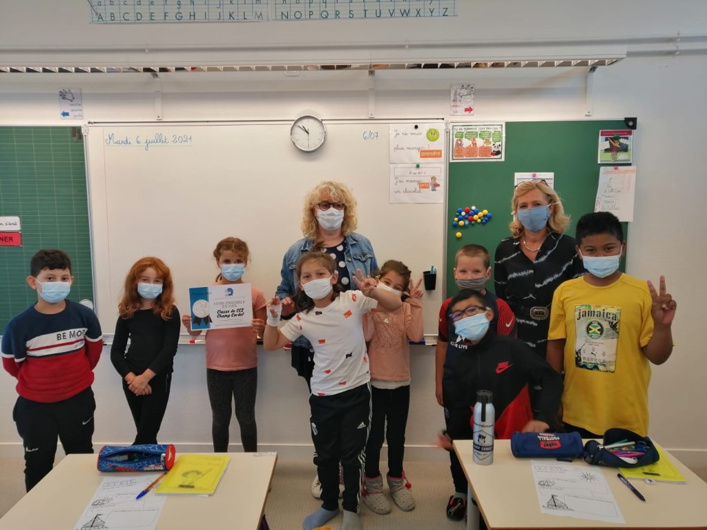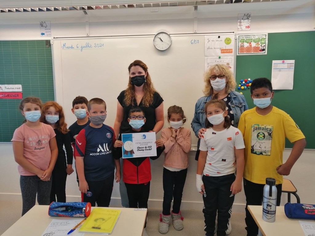 C’est Mme Marlin, inspectrice de l’Education Nationale, et Mme Mallet, conseillère pédagogique qui sont venues en personne féliciter les élèves et leur remettre le premier prix du concours !
