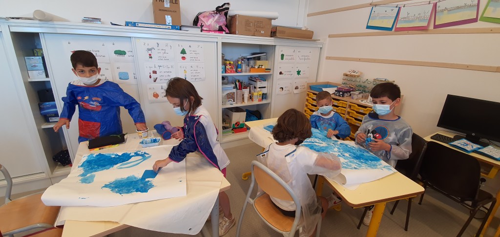 Les CP-A avaient choisi de travailler l’après-midi sur un projet scientifique et artistique en lien avec l’actualité spatiale. Après avoir suivi le décollage de Thomas Pesquet pendant les vacances, nous avons échangé nos impressions sur cette expérience et avons étudié le fonctionnement des fusées et de l’ISS. Et nous avons ensuite expérimenté le lancement d’une fusée à eau. Un succès, même si nous n’avons pas atteint l’espace.