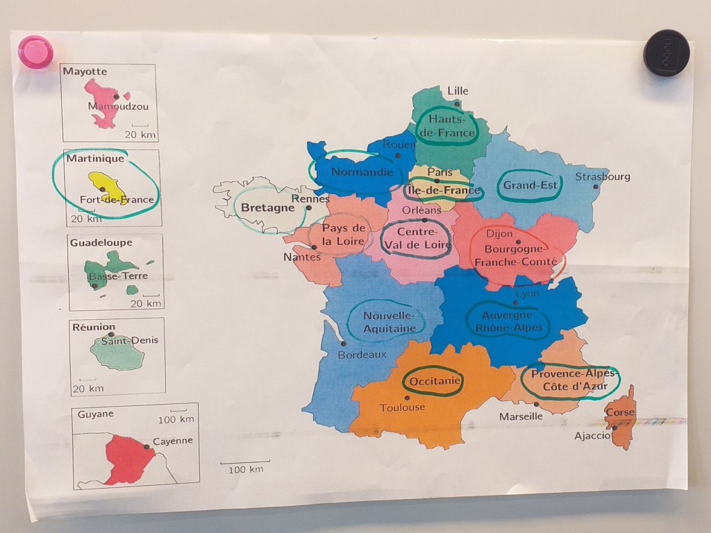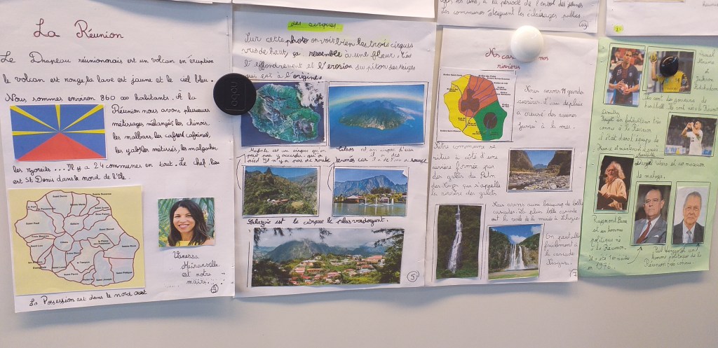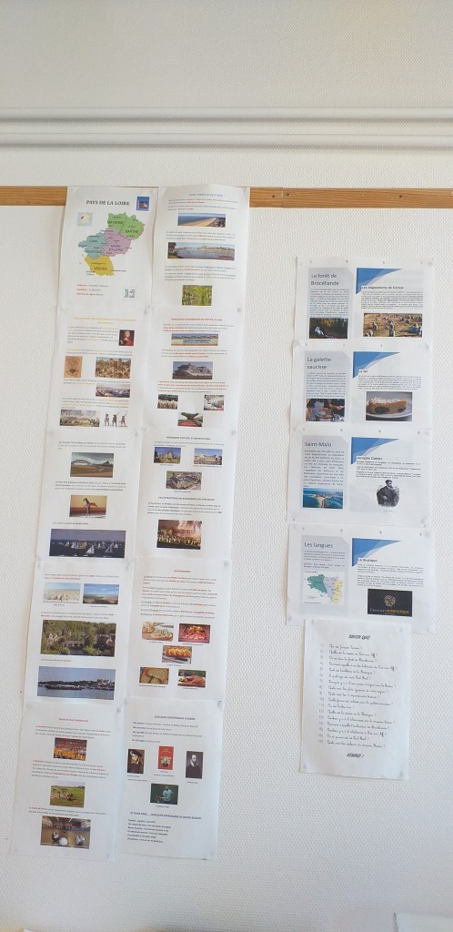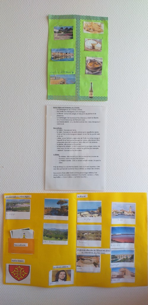 Cette année, la classe de CE1 a eu la joie de découvrir la richesse des régions françaises en participant à un «tour de France» des régions. Chaque région était représentée par une classe ( du CP au CM2 ). A partir de février, nous avons commencé à recevoir leurs courriers. Quel plaisir pour les yeux! Nous avons appris beaucoup de choses que ce soit sur la faune, la flore ou la cuisine. Ce projet s’est conclu par l’apprentissage de la chanson des enfantastiques : «Elle me plaît bien comme ça la France».